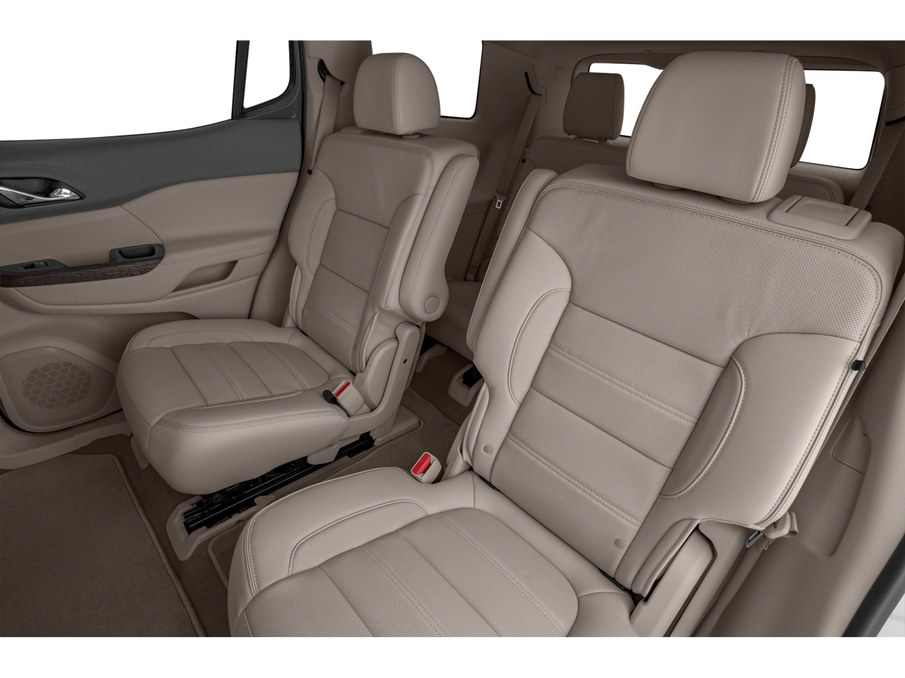 Feature, Brake assist, Bumpers: body-color, Compass, Delay-off headlights, Driver door bin, Driver vanity mirror, Dual front impact airbags, Dual front side impact airbags, Electronic Stability Control, Emergency communication system: OnStar and GMC connected services capable, Four wheel independent suspension, Front anti-roll bar, Front Bucket Seats, Front Center Armrest, Front dual zone A/C, Front fog lights, Front License Plate Bracket, Front reading lights, Fully automatic headlights, Garage door transmitter, HD Radio, Heated & Ventilated Driver & Front Passenger Seats, Heated door mirrors, Heated Driver & Front Passenger Seats, Heated front seats, Heated rear seats, Heated steering wheel, Illuminated entry, Knee airbag, Low tire pressure warning, Memory seat, Navigation System, Occupant sensing airbag, Outside temperature display, Overhead airbag, Overhead console, Panic alarm, Passenger door bin, Passenger vanity mirror, Perforated Leather-Appointed Seat Trim, Power door mirrors, Power Driver Lumbar Control Seat Adjuster, Power driver seat, Power Liftgate, Power Passenger Lumbar Control Seat Adjuster, Power passenger seat, Power steering, Power windows, Premium audio system: GMC Infotainment System, Radio data system, Radio: AM/FM 8 Diagonal Multi-Touch Navigation, Rear air conditioning, Rear anti-roll bar, Rear reading lights, Rear window defroster, Rear window wiper, Remote keyless entry, Roof rack: rails only, Security system, SiriusXM w/360L, Speed control, Speed-sensing steering, Spoiler, Steering wheel memory, Steering wheel mounted audio controls, Tachometer, Telescoping steering wheel, Tilt steering wheel, Traction control, Trip computer, Turn signal indicator mirrors, Variably intermit