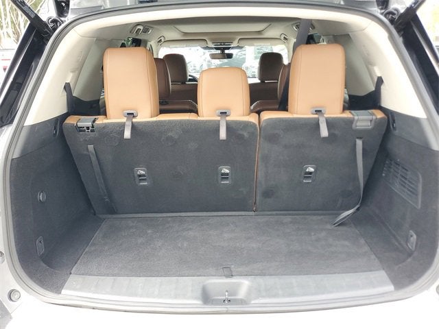 Dual front impact airbags, Dual front side impact airbags, Electronic Stability Control, Emergency communication system: NissanConnect Services, Exterior Parking Camera Rear, Four wheel independent suspension, Front anti-roll bar, Front Bucket Seats, Front Center Armrest, Front dual zone A/C, Front reading lights, Fully automatic headlights, Garage door transmitter: HomeLink, Heads-Up Display, Heated & Cooled Front Bucket Seats, Heated door mirrors, Heated front seats, Heated rear seats, Heated steering wheel, Illuminated entry, Knee airbag, Leather steering wheel, Low tire pressure warning, Memory seat, Navigation system: NissanConnect Navigation, NissanConnect w/Navigation & Services, Occupant sensing airbag, Outside temperature display, Overhead airbag, Overhead console, Panic alarm, Passenger door bin, Passenger vanity mirror, Power door mirrors, Power driver seat, Power Liftgate, Power moonroof, Power passenger seat, Power steering, Power windows, Radio data system, Radio: AM/FM Audio System, Rain sensing wipers, Rear air conditioning, Rear anti-roll bar, Rear reading lights, Rear seat center armrest, Rear side impact airbag, Rear window defroster, Rear window wiper, Reclining 3rd row seat, Remote keyless entry, Security system, Semi-Aniline Leather Seating Surfaces, Speed control, Speed-sensing steering, Speed-Sensitive Wipers, Split folding rear seat, Spoiler, Steering wheel memory, Steering wheel mounted audio controls, Tachometer, Telescoping steering wheel, Tilt steering wheel, Traction control, Trip computer, Turn signal indicator mirrors, Variably intermittent wipers, Ventilated front seats, and Wheels: 20 Machined Alloy w/Dark Met Gray Finish must finance with th